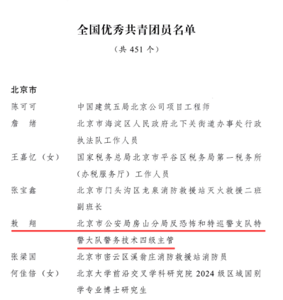 喜报!房山区青年民警获评“全国优秀共青团员”