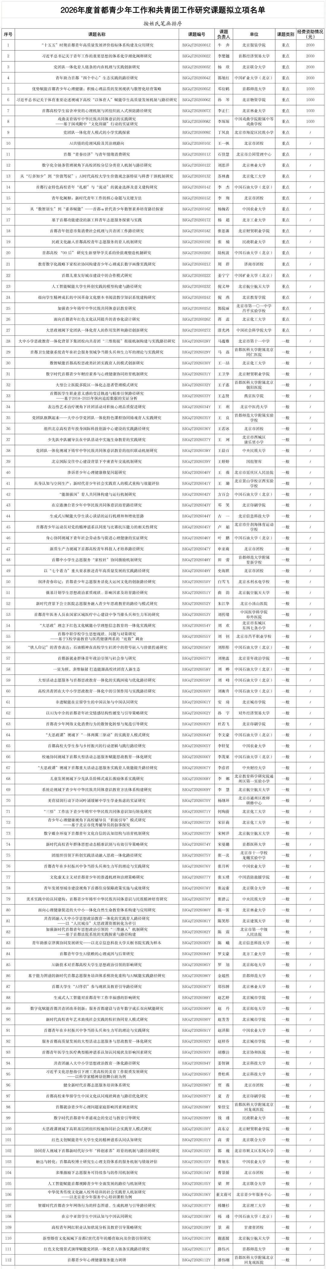 附件:2026年度首都青少年工作和共青团工作研究课题拟立项名单