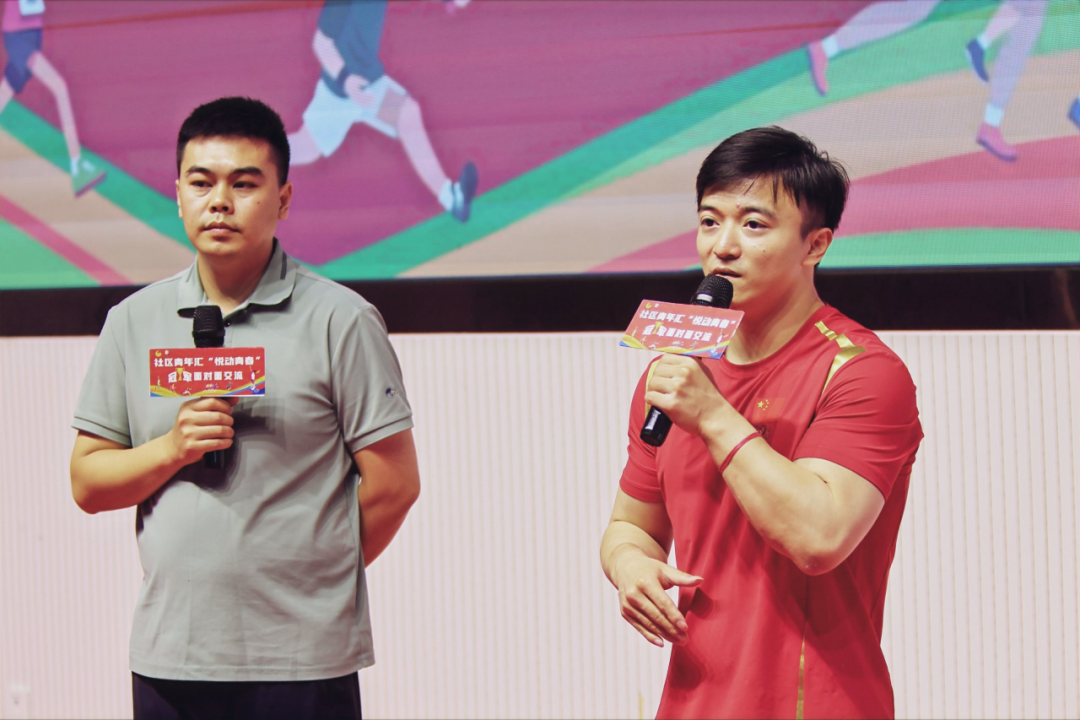 活动现场,奥运冠军刘洋讲述了他从入选国家队到两度站上奥运会最高领奖台的奋斗历程,他用真挚朴实的语言,回顾了训练中的艰辛、挫折后的坚持以及获胜时的喜悦,一个个难忘的瞬间,深刻诠释了“为国争光、无私奉献、科学求实、遵纪守法、团结协作、顽强拼搏”的中华体育精神,极大地激励了青年们树立积极向上、勇于挑战的进取心。交流环节,刘洋与青年们围绕职业规划、压力纾解等话题深入交流。