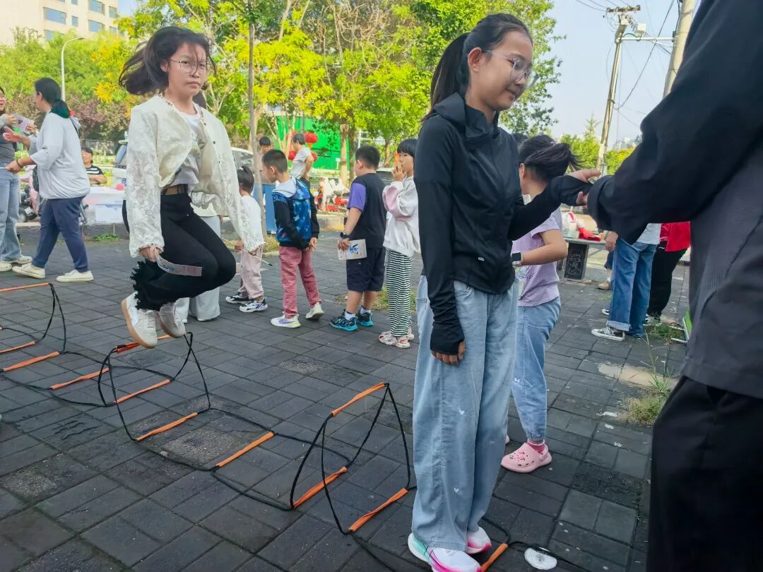 活动现场精心设置了躯体前测、减脂跳棋、套圈、投壶、障碍跳等众多趣味打卡项目。青少年们兴致盎然,在各个项目间往来打卡。每个项目都聚集了大量参与者,大家在运动中舒缓压力,畅享欢乐。