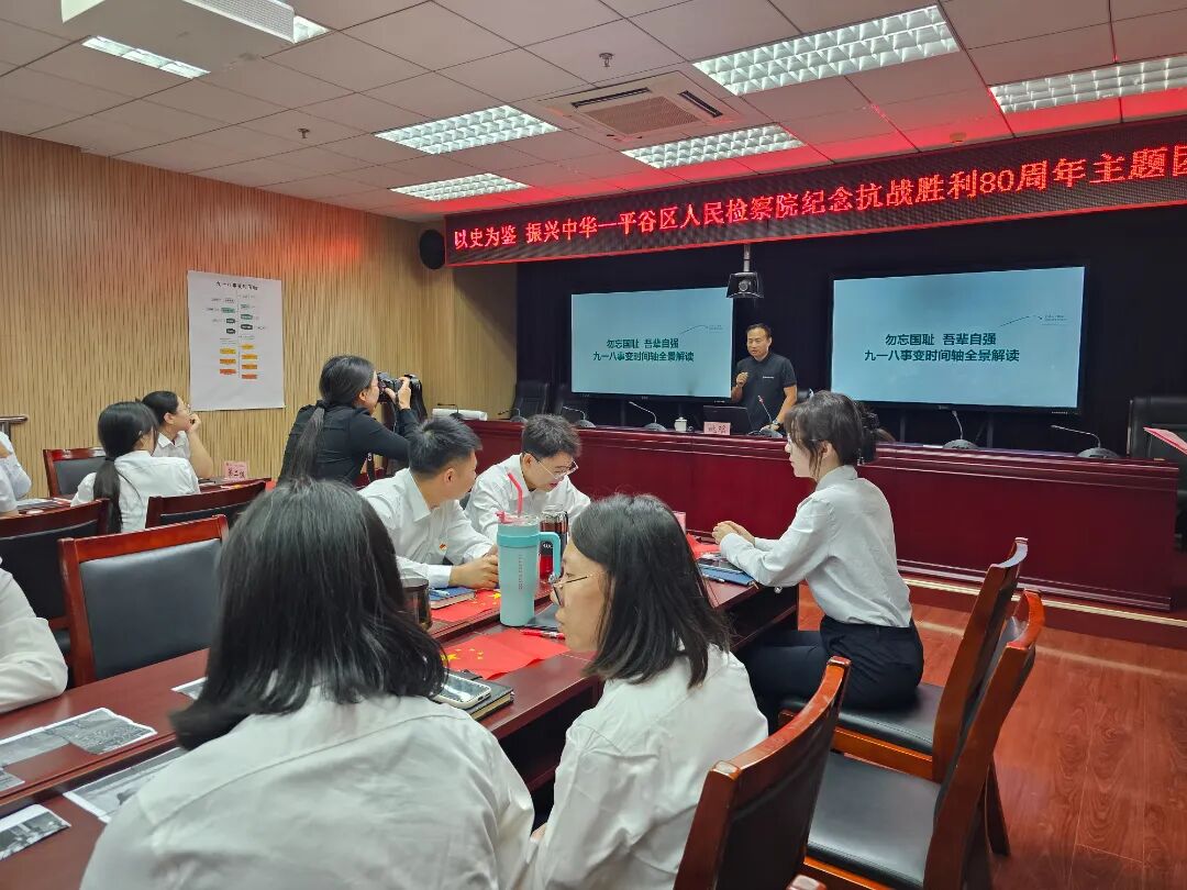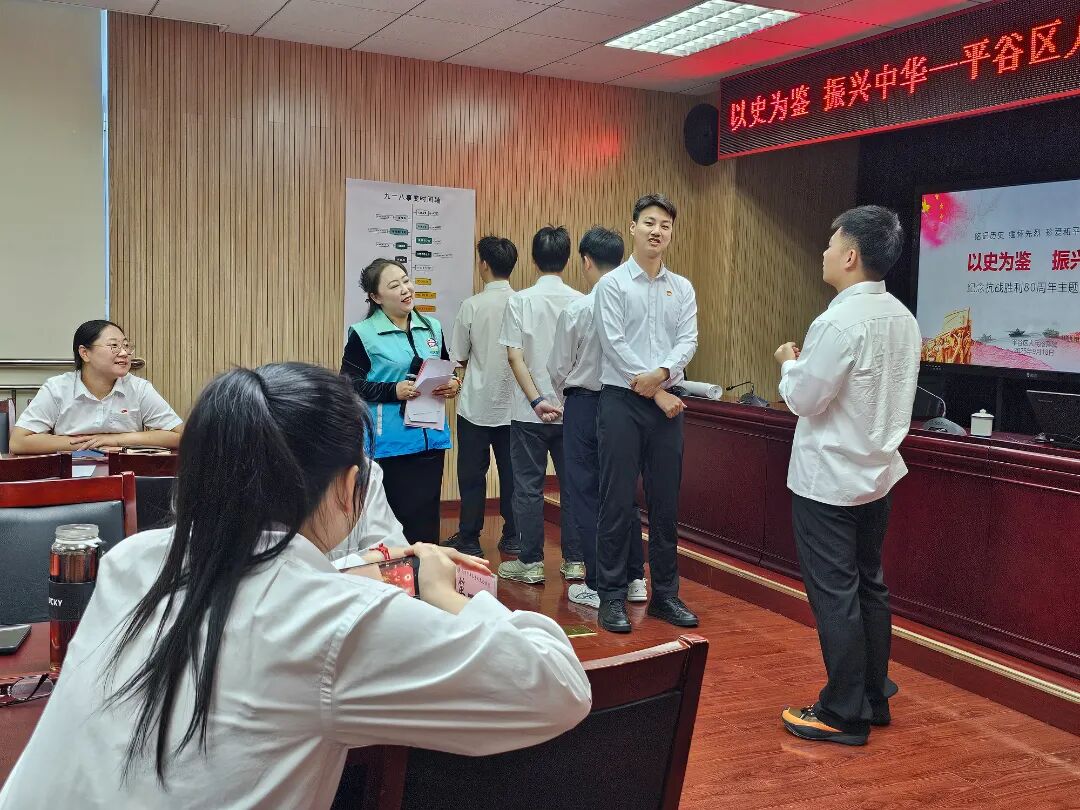 为纪念中国人民抗日战争暨世界反法西斯战争胜利80周年,引导广大青年铭记历史、缅怀先烈、珍爱和平、开创未来。9月18日,平谷共青团钨丝邦社区青年汇联合平谷区检察院组织青年开展“以史为鉴、振兴中华”主题活动,通过丰富多元的环节,让青年在沉浸式体验中厚植家国情怀,凝聚奋进力量。