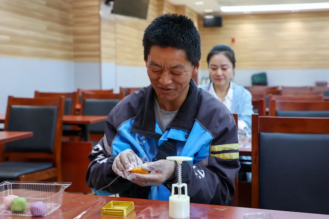 针对“两企三新”群体,“聚‘新’迎佳节 巧手做月饼”活动充满烟火气。青年们围坐一起,揉面团、包馅料、压模具,每一步都细致专注,在协作制作中亲手赋予月饼“团圆”的意义,品尝时更是满溢着传统节日的温馨,活动现场暖意融融,处处洋溢着节日的喜悦。