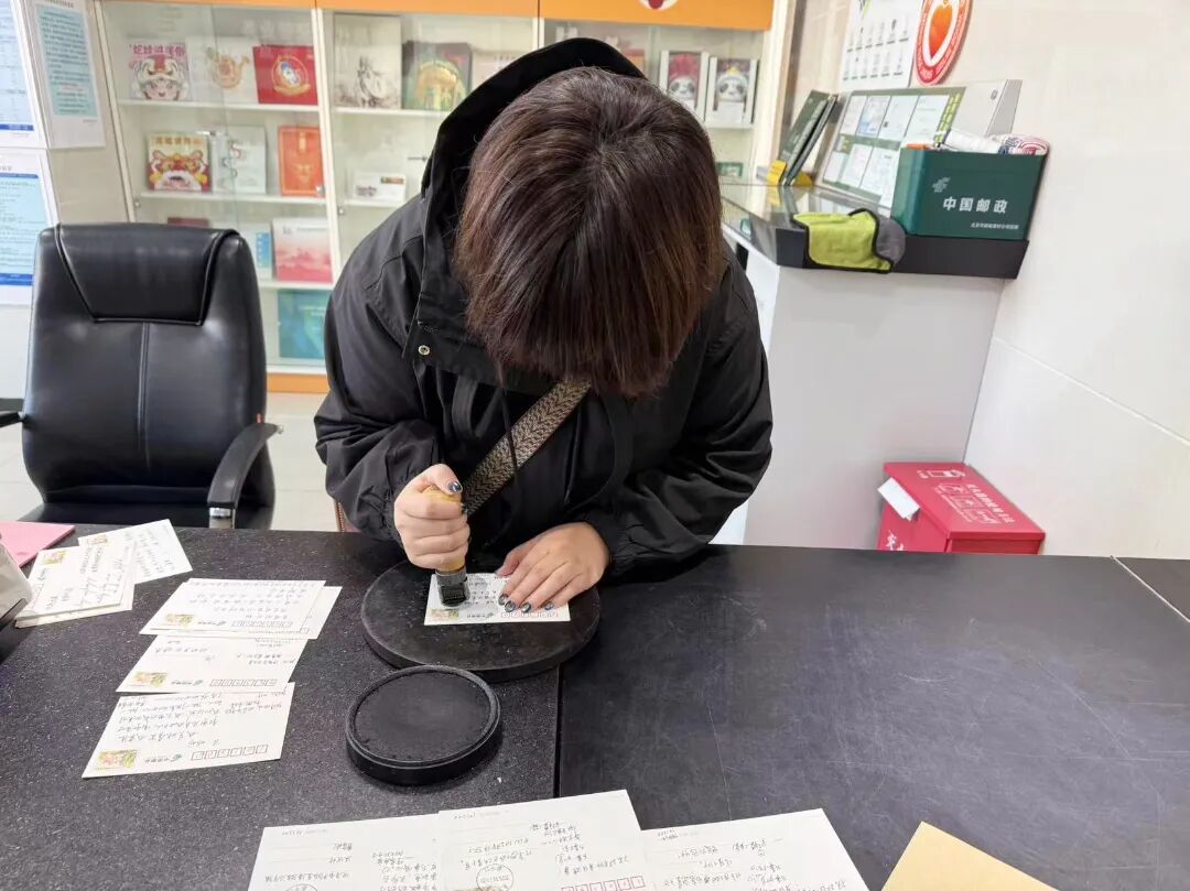 在“时光慢递邮局”,一张张明信片成为情感的载体。参与者凝思提笔,有人写下对父母“少些操劳,多些安康”的叮嘱,有人倾诉“平时忙碌少陪伴,佳节才懂思念深”的愧疚,工作人员仔细收集每一张明信片,它们将跨越距离,带着最真挚的祝福,送到长辈亲朋手中,带来一份不期而至的的浪漫和感动。