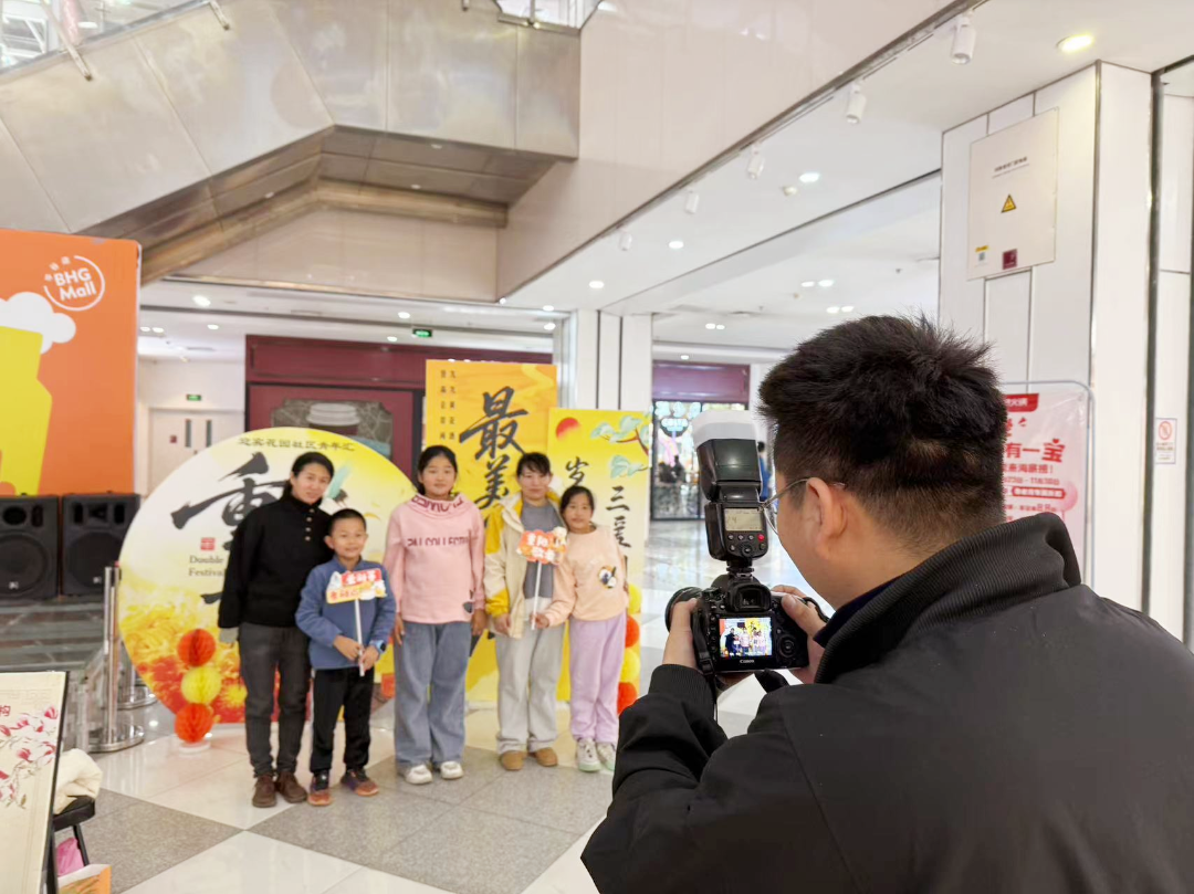 “温馨家庭合影”区成了定格幸福的角落。精心布置的背景板、舒适的座椅,让每个家庭都能放松展现温情。摄影师捕捉着长辈与子女间的互动:或许是一个温暖的拥抱,又或是共同比出的“剪刀手”。每张照片都满含爱意。