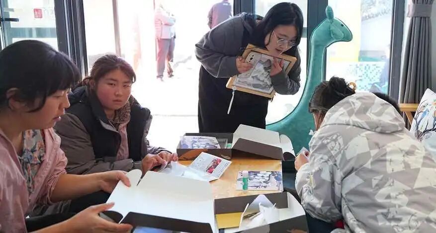 延庆唐氏羽毛画工坊内,传承人带领青少年走进羽毛画的奇妙世界,从羽毛处理、模型制作到粘贴技法,耐心指导每一个细节。大家小心翼翼地搭配羽毛、构思构图,将自然之美与艺术巧思完美融合,一幅幅简易羽毛画作品新鲜出炉,在创作中领悟传统工艺的美学精髓。