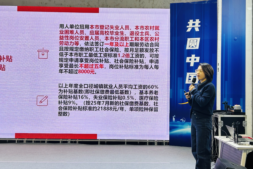为破解青年“政策看不懂、申请找不到门路”的难题,邀请区人力社保局、税务局业务负责人聚焦企业开办、税收减免、就业扶持、住房补贴等青年关心的政策,开展精准解读与现场答疑,通过“政策拆解+ 实操指引”,推动创业就业政策精准触达青年群体,为初创者及潜在创业者明晰发展路径,打通政策落地“最后一公里”。