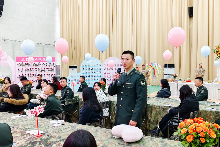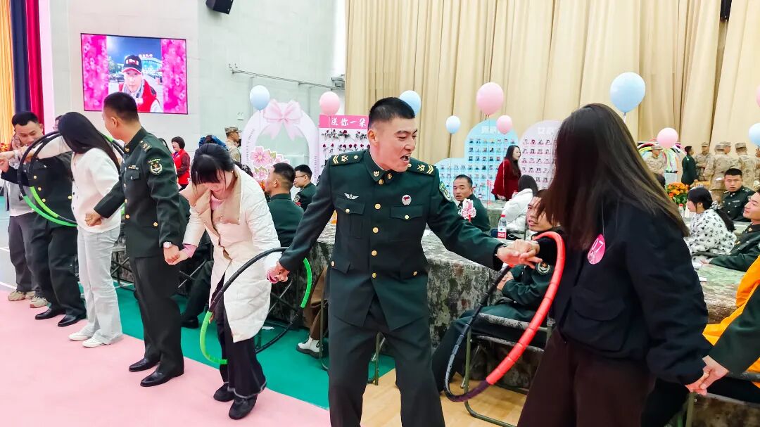 “音乐传情”环节里,丘比特心形抱枕随旋律流转,青年们趁传递间隙分享人生故事与交友期许,部队官兵带来开场表演《弹起我心爱的土琵琶》,尽显军人飒爽风采与青春朝气;《破风八刀》表演则让地方青年直观感受到军人铁血豪情,现场掌声此起彼伏。