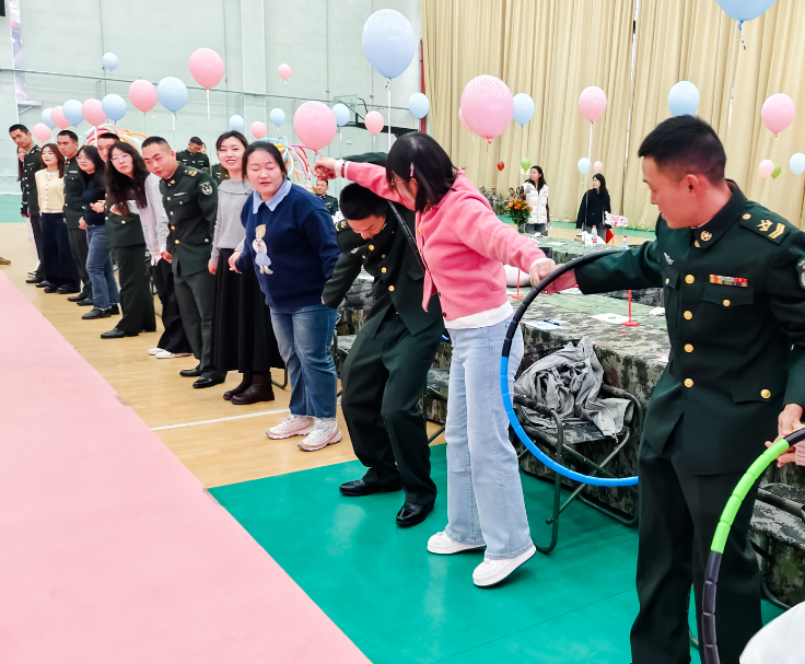 “同舟共济”多人多足竞走展现步调一致的协作精神,“环环相扣”呼啦圈传递考验肢体配合,“蒙眼寻声”“猜歌派对”等趣味项目更让青年们在竞技中拉近距离,军地情谊悄然升温。