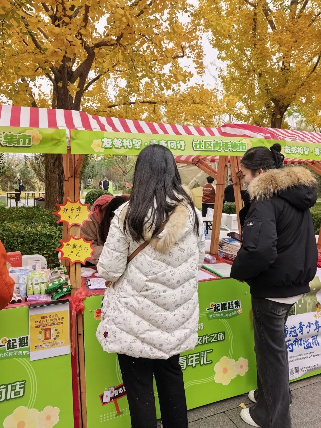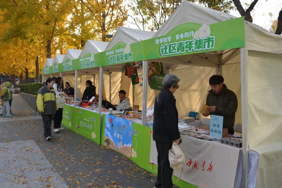 在首都文化推广区,“京韵传承 青春建功”的理念为市集注入深厚底蕴。在“旧书新知”摊位,街道团工委携手中国书店,通过旧书回收与老物件展示,打造连接过去与现在的“时光驿站”,吸引众多青年驻足。他们翻阅泛黄书页,聆听志愿者讲述故事,在与旧物的对话中感受文化传承的温度与共鸣。“没想到旧书这么有魅力,文化真的‘活’起来了。”一位青年感慨道。