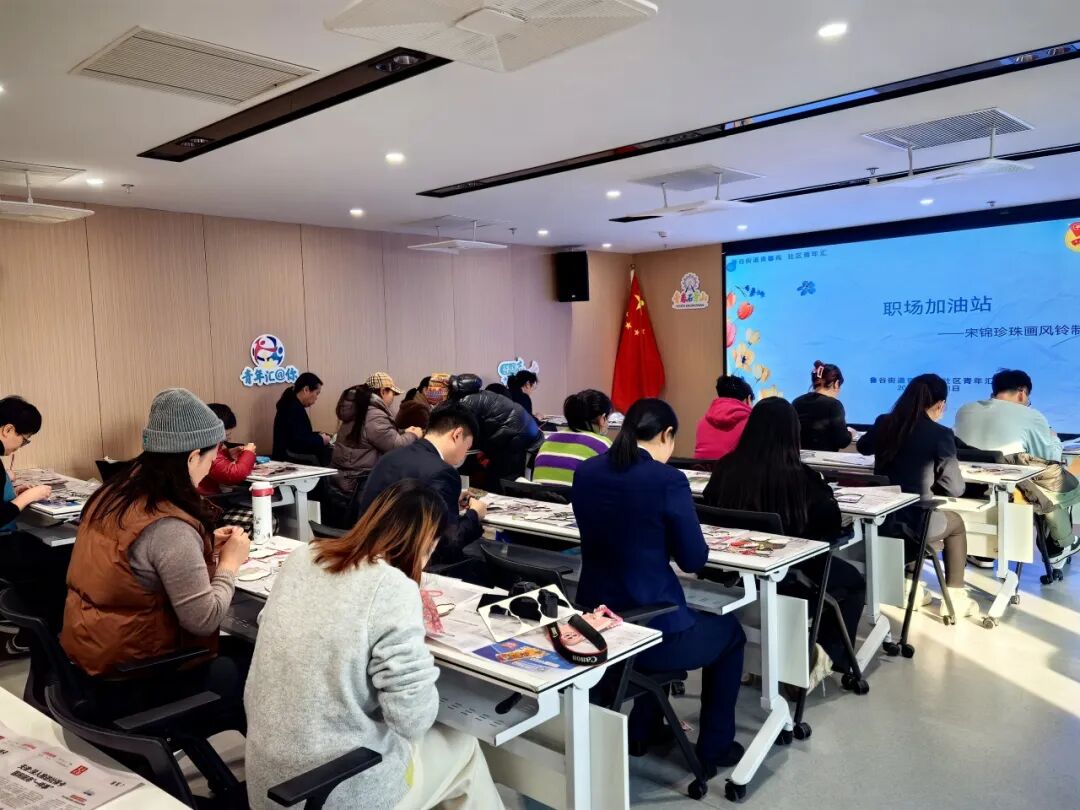 为丰富青年精神文化生活,传承弘扬非遗传统文化,12月11日,鲁谷街道青馨苑·社区青年汇组织开展“宋锦珍珠画风铃”手工体验活动,青年们在社工的指导下,用丝线勾勒图案,将珍珠巧妙点缀于宋锦之上,通过“织、嵌、贴”等技法完成独具特色的艺术创作。活动不仅让参与者领略到手工技艺的匠心之美,也让他们在动手创作中感受到宋锦非遗的魅力,更为传统技艺的传承推广注入新的活力。