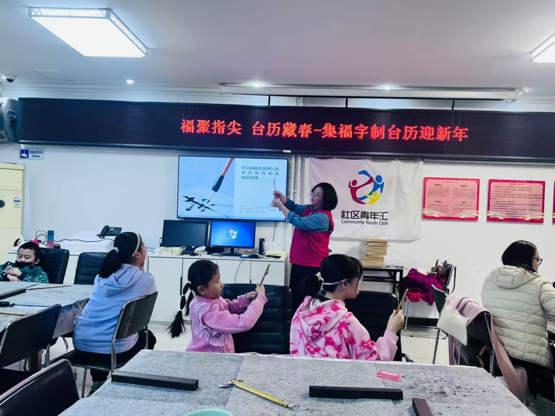 为丰富青少年课余生活、传承新年民俗文化,青春总部·社区青年汇组织开展了“福聚指尖 台历藏春”集福字制台历迎新年主题活动。活动中,青少年动手收集福字、DIY 定制台历,在实践中感受传统年味。此次活动既锻炼了青少年的动手能力,又传递了新春美好祝愿,营造出欢乐祥和的迎元旦氛围。