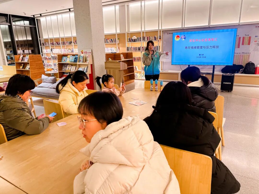 “情绪小问卷”破冰游戏有效拉近了青年间的距离。青年匿名填写当前最困扰的情绪、情绪来源及课程期待,将问卷投入“情绪信箱”,在轻松氛围中开启情绪探索之旅。讲师结合真实案例,深入剖析岁末青年常见的焦虑、压力过载、情绪低落等问题的表现与成因,重点阐释“适度压力有益,过度压力有害”的辩证关系,帮助青年打破“压力=负担”的固有思维,建立对情绪与压力的科学认知。