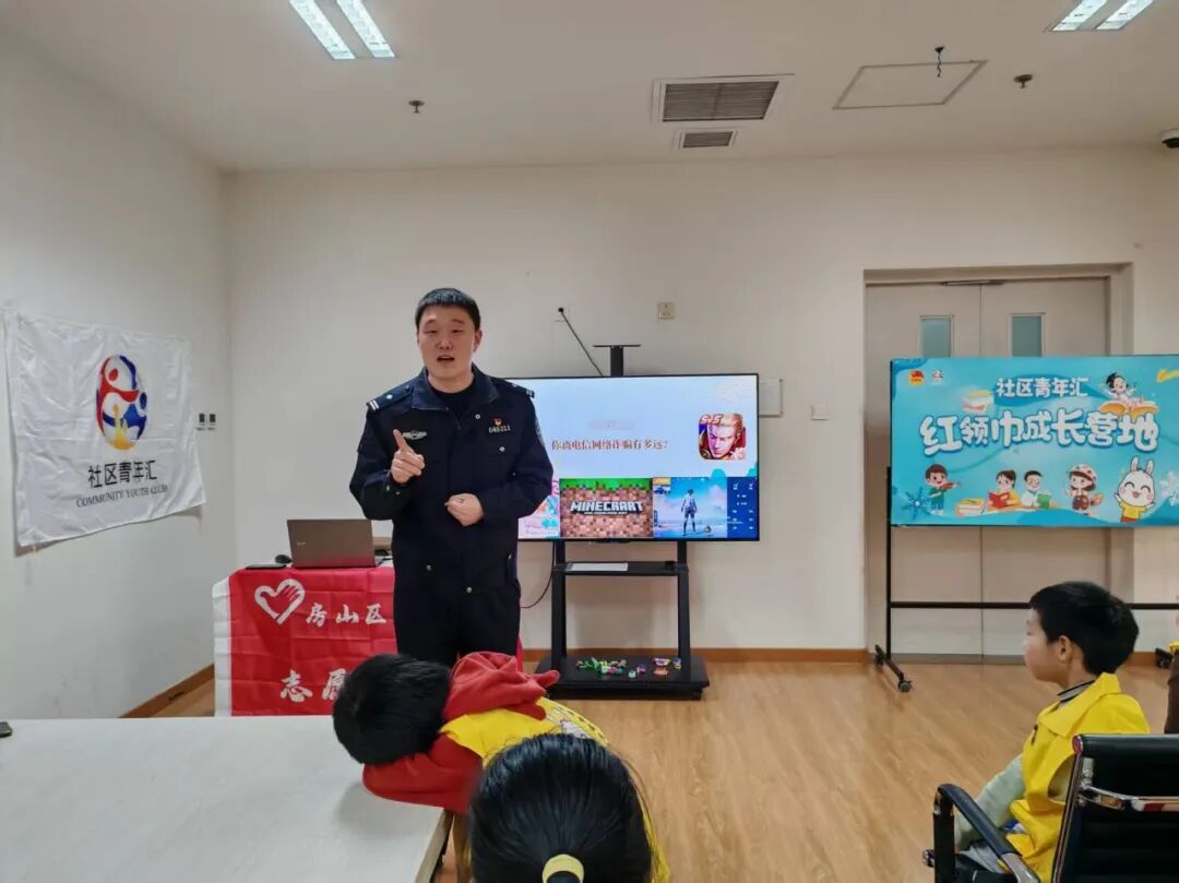 青年讲师结合小学生易遭遇的游戏充值、虚假中奖、冒充老师亲友等典型诈骗案例,用童趣易懂的语言拆解诈骗套路、讲解实用防范技巧。课堂互动氛围热烈,讲师以趣味提问引导思考,少先队员们踊跃举手、积极抢答,讲师逐一答疑、及时肯定,让大家在轻松互动中认清诈骗陷阱,切实提升自我保护能力,树立理性辨诈、安全防范的正确观念。