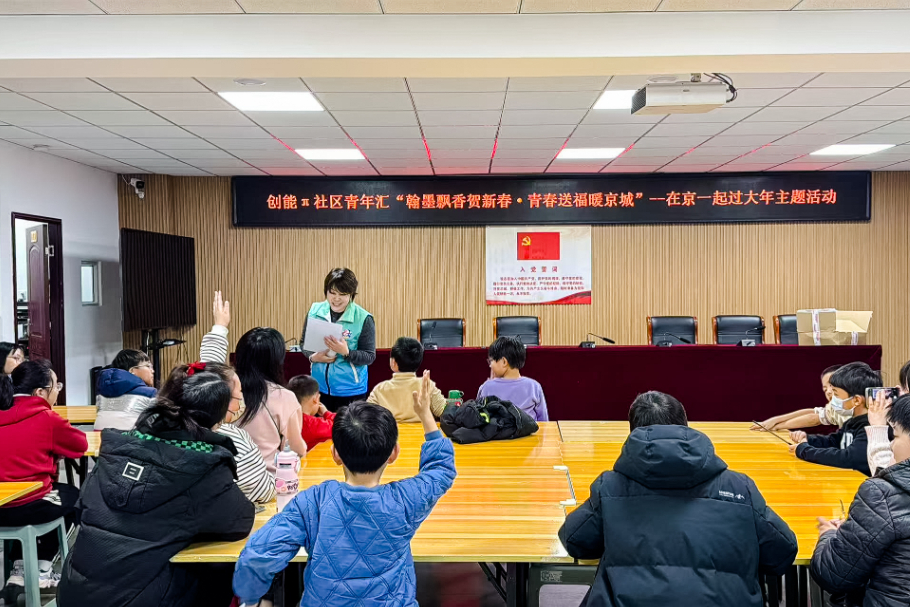 2月9日下午,平谷共青团创能π社区青年汇在泃河湾居委会举办了“翰墨飘香贺新春·青春送福暖京城”主题活动,20余名青少年与社区书法爱好者欢聚一堂,共迎新春佳节。活动现场洋溢着浓厚的节日氛围和浓浓墨香,展现出一幅温馨祥和的迎春画卷。