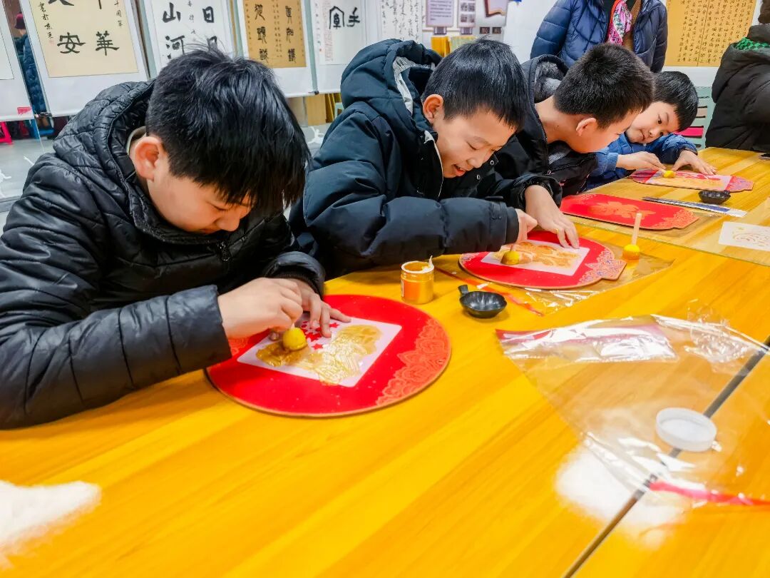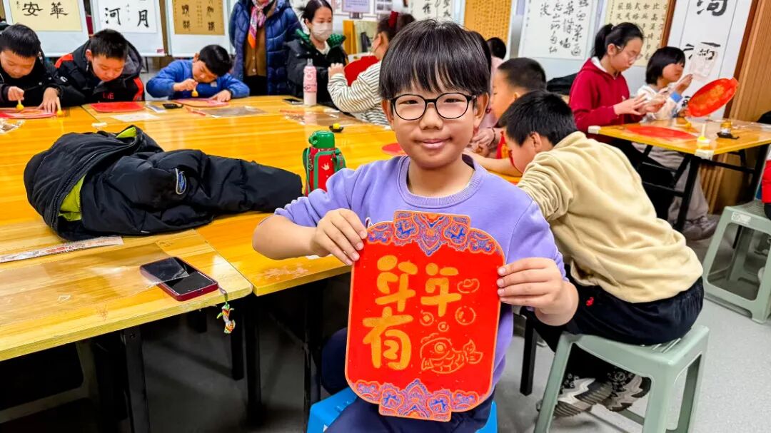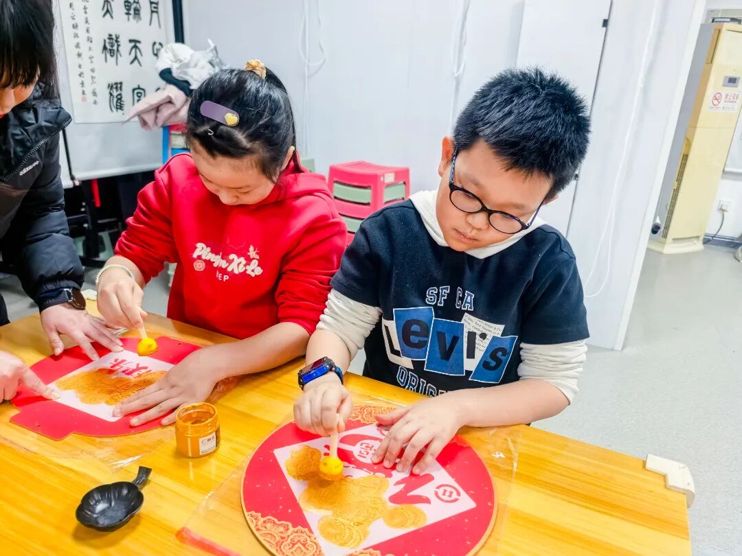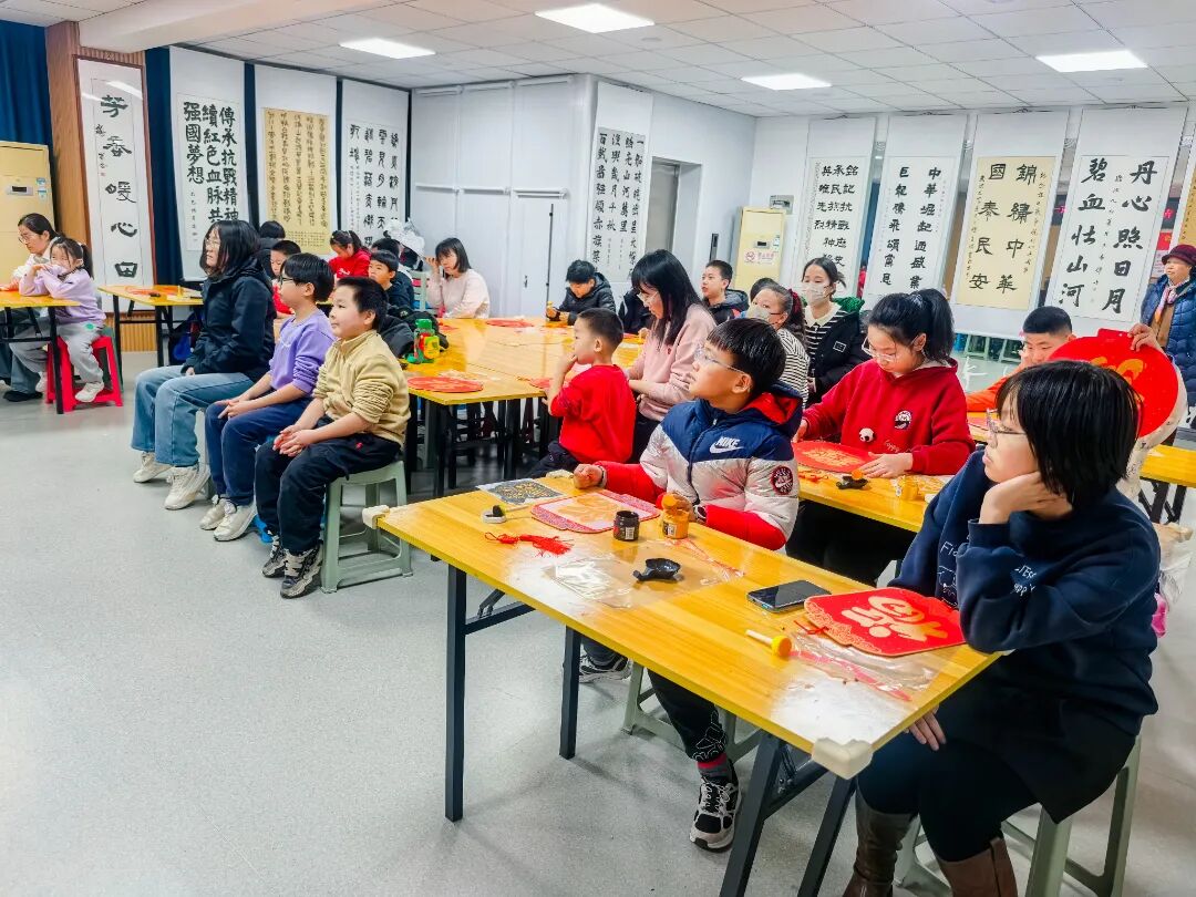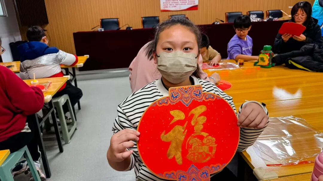 在手工制作环节,孩子们学习制作拓印福字灯笼。铺纸、上墨、拓印、组装……每个步骤都充满乐趣。当一盏盏红彤彤的福字灯笼在孩子们手中亮起温暖的光芒时,每个人脸上都洋溢着自豪的笑容。