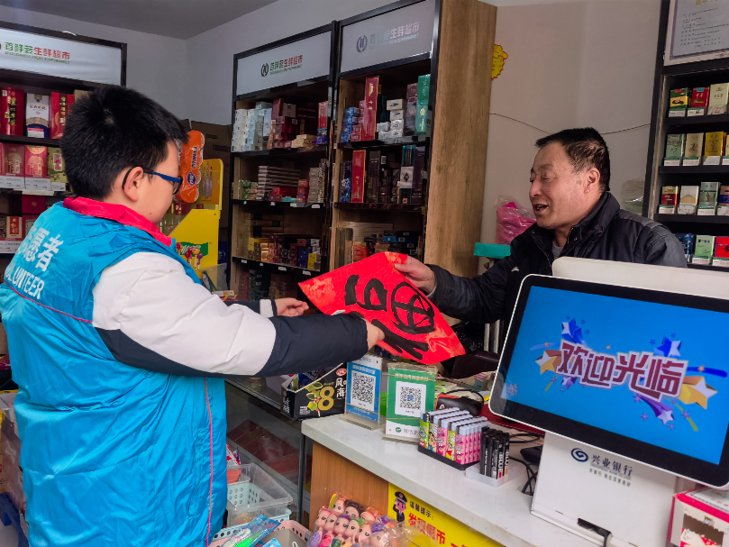 带着满满的祝福,孩子们组成“送福小分队”,在社工的带领下来到辖区公园和沿街门店。在泃河湾社区公园,孩子们将福字送给正在锻炼的居民;在社区便利店,他们为辛勤工作的店员送上新春祝福。“叔叔阿姨,新年快乐!这是我们写的福字,送给您!”稚嫩的祝福声中充满了真诚与温暖。