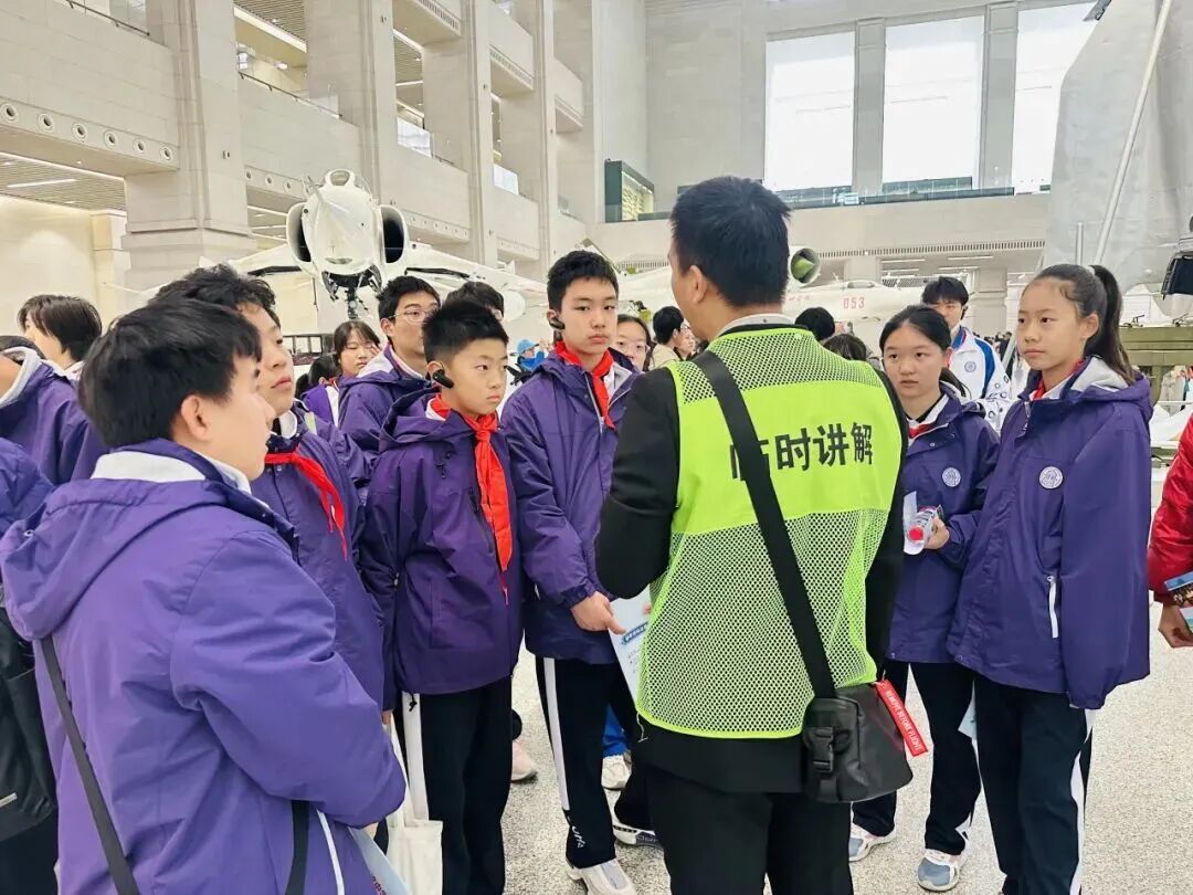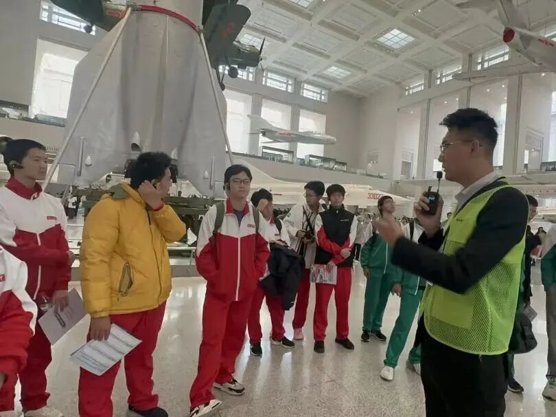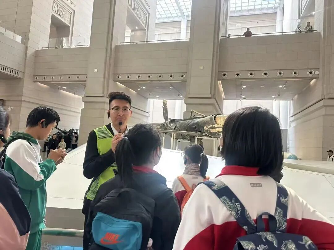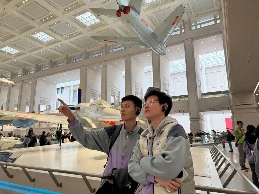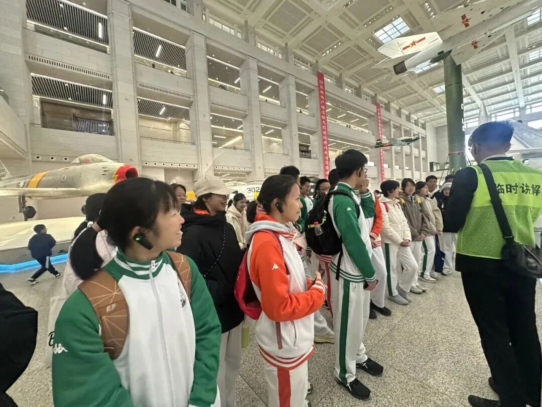 在“抗日战争馆”,破损的战机残骸、手枪等文物让同学们仿佛触摸到先辈的战斗岁月。在“两弹一星”展区,老一代科学家的奋斗与奉献精神,更让同学们感动。回程中,多位同学分享感悟,真挚情感打动带队老师。
