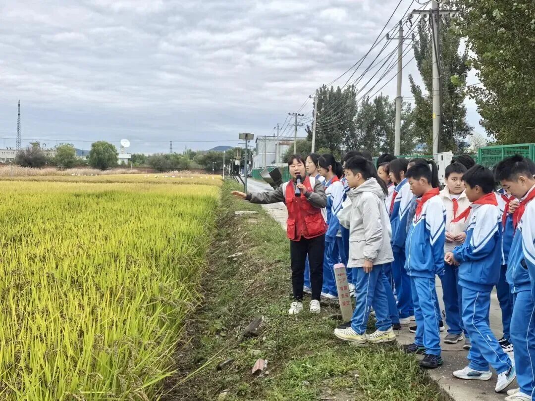 10月17日,北京市第五十七中学上庄分校组织初中学生,走进海淀区“文脉海淀”主题学习线路——京西稻保护性种植区,成功开展了一场别开生面的“行走的思政课”主题团日活动。活动中,同学们在金色的稻田里聆听讲解,追溯京西稻从“康熙御稻”到非物质文化遗产的百年传承;在博物馆内体验古法砻米、辨识传统农具,亲身感受农耕智慧与现代科技的交融。此次主题团日将思政课堂搬到田间地头,让同学们在沉浸式体验中深化了对农耕文化的理解,增强了文化自信与民族自豪感,深刻体会到“科技兴农”的时代内涵,激发了新时代青年传承中华优秀传统文化、立志报国的责任与担当。