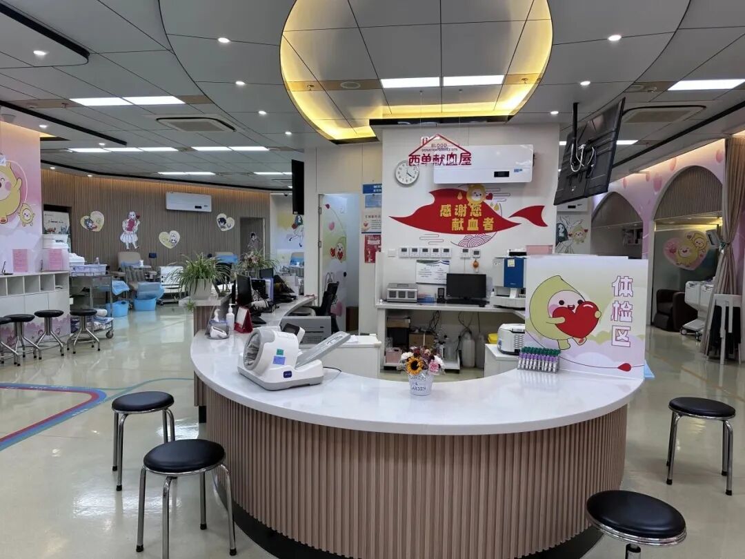 西单献血屋位于西城区西单北大街180号西单更新场地上一层侧北侧,集无偿献血和造血干细胞捐献、应急救护知识、AED使用技能普及、公共卫生、国产动漫IP等多功能为一体,是“离红墙最近、与百姓最亲”的红十字志愿服务阵地。