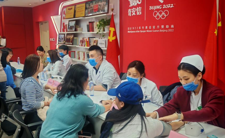 参观结束后,一场聚焦企业职工健康需求的义诊活动在奇安信党建活动室温情启幕。根据职业特点,各区属医院及社区卫生服务中心选派中医科、骨科、康复科、耳鼻喉科、功能检查科等领域的优秀青年医师,针对办公族常见的颈椎腰椎不适、压力焦虑、慢性病管理等问题,提供精准诊疗、健康咨询、中医脉诊、超声检查等多元化服务。