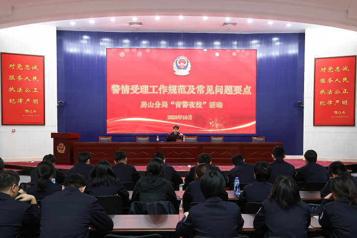 10月17日晚,房山公安分局团委联合法制支队,以“警情受理工作规范及常见问题要点”为主题,组织青年民警开展“青警夜校”活动,法制支队执法规范化大队副大队长刘禹豪进行授课。