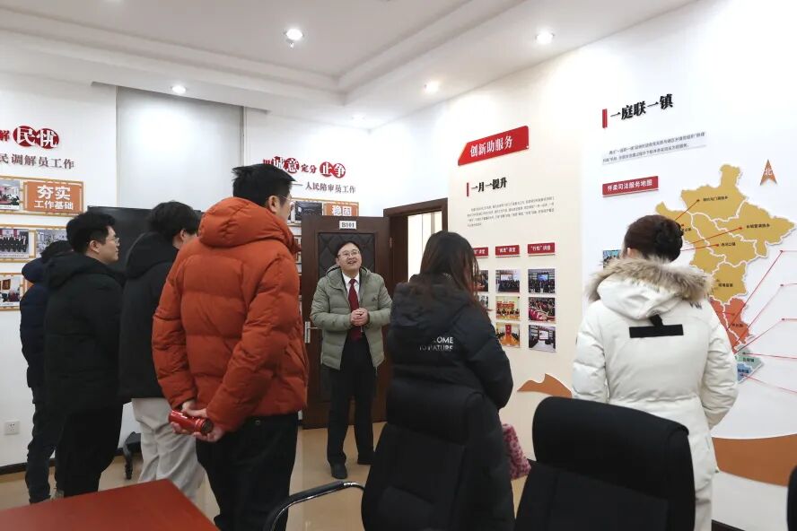 活动现场,青联委员、怀柔法院民一庭庭长夏阳首先带领委员们参观了法院远程视频法庭、少年亲情法庭等各类专业法庭,详细介绍了不同法庭的功能定位、审判设施配置及特色司法服务模式,让委员们直观感受法院规范化建设成果与司法为民工作理念。