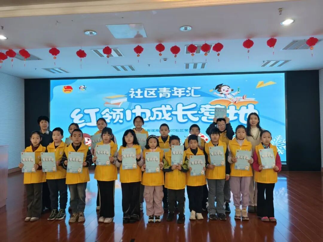 1月26日上午,崇文门外街道崇尚空间·社区青年汇红领巾成长营在崇文门外街道新怡商务楼党群服务中心正式开营。团区委副书记李荷梦、崇文门外街道工委副书记南楠出席仪式,小营员、家长代表、志愿者共20余人参加活动。开营仪式上,营员代表为与会嘉宾佩戴上象征使命与传承的红领巾。李荷梦副书记、南楠副书记与营员们一同唱响中国少年先锋队队歌,为营员们佩戴营员证,寄予殷切期望。随后,李荷梦副书记为红领巾成长营授旗,鼓励营员们积极探索、勇于尝试,在成长营中结交新朋友、学到新知识、收获新体验,让这个寒假充实而快乐。校地共建单位北京工商大学商学院学生为营员们带来精彩的宣讲,引导营员们从红色故事里感悟家国情怀,在非物质文化遗产中领略中华文脉,争做有理想、肯奋斗的新时代好少年。
