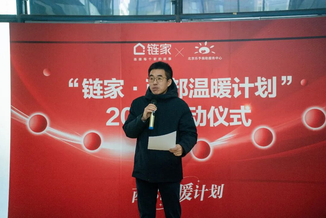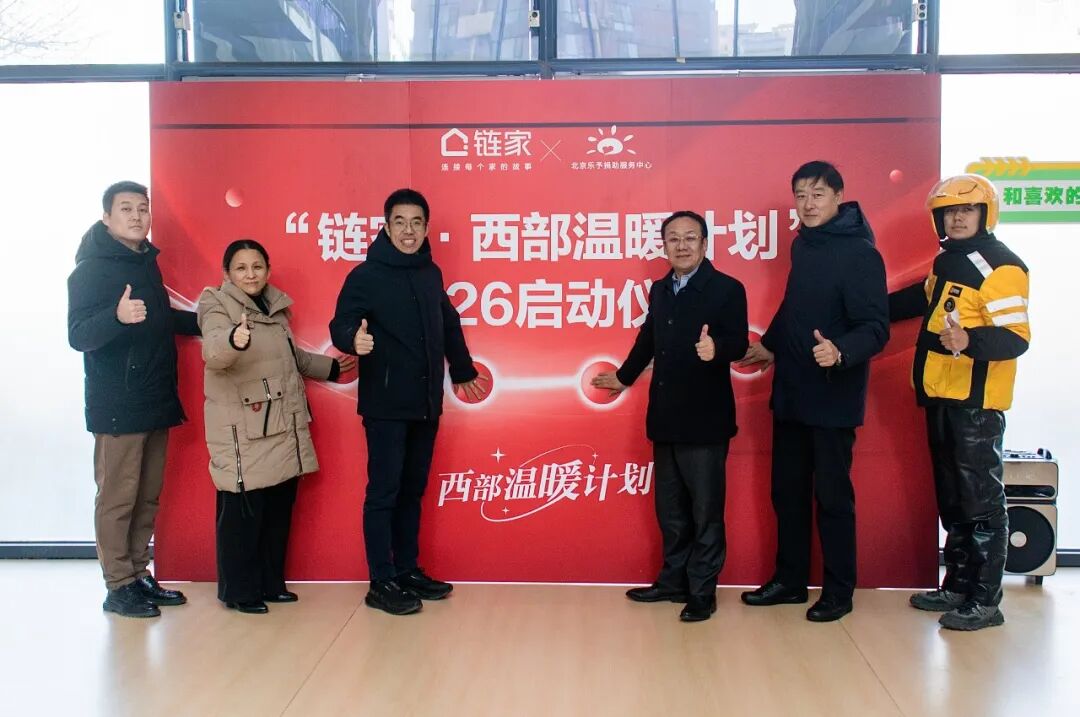 2026年1月20日下午,在朝阳团区委指导下,北京链家作为“西部温暖计划”联合主办单位,在劲松街道首城链链驿站举行了2026年捐赠季启动仪式。朝阳团区委书记余作泽、劲松街道党工委副书记封钢、乐予捐助服务中心理事长张超、首城社区党委书记苏丽迦以及北京链家党委书记尹晓珺等领导出席。