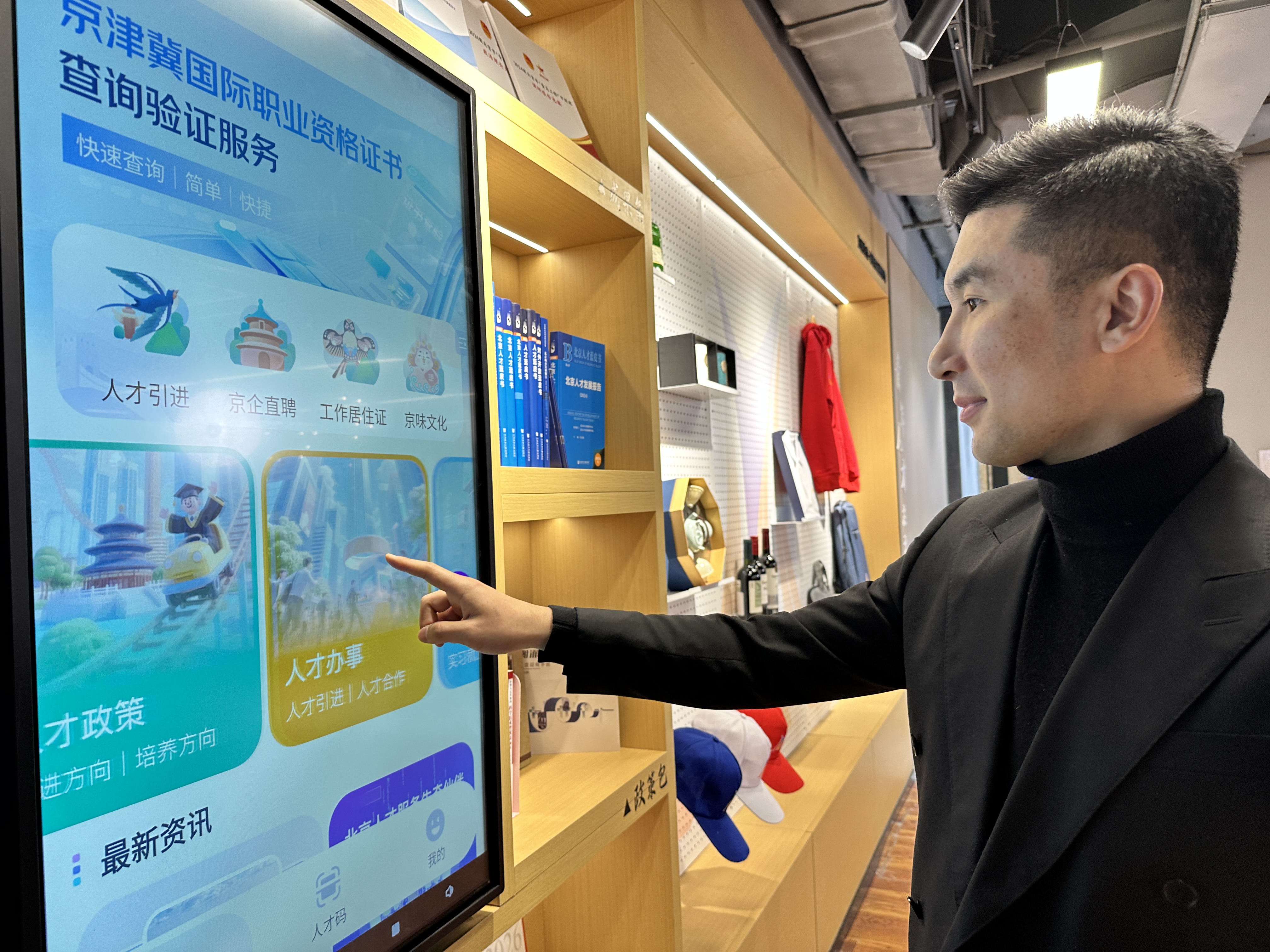 青年创业者体验“青凝空间”的智慧查询终端