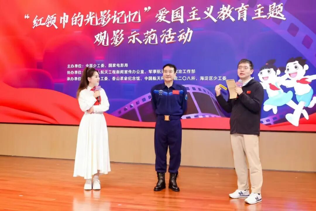 活动现场,来自北京市的近200名少先队员、少先队辅导员代表共同观看了中央广播电视总台领衔出品的我国首部8K拍摄太空电影《窗外是蓝星》。该部电影以神舟十三号飞行乘组首次执行在轨驻留6个月任务为蓝本,主要画面由神舟十三号航天员翟志刚、王亚平、叶光富作为摄影师在中国空间站拍摄。神舟十三号任务指令长翟志刚、电影《窗外是蓝星》导演朱翌冉与少先队员互动交流。