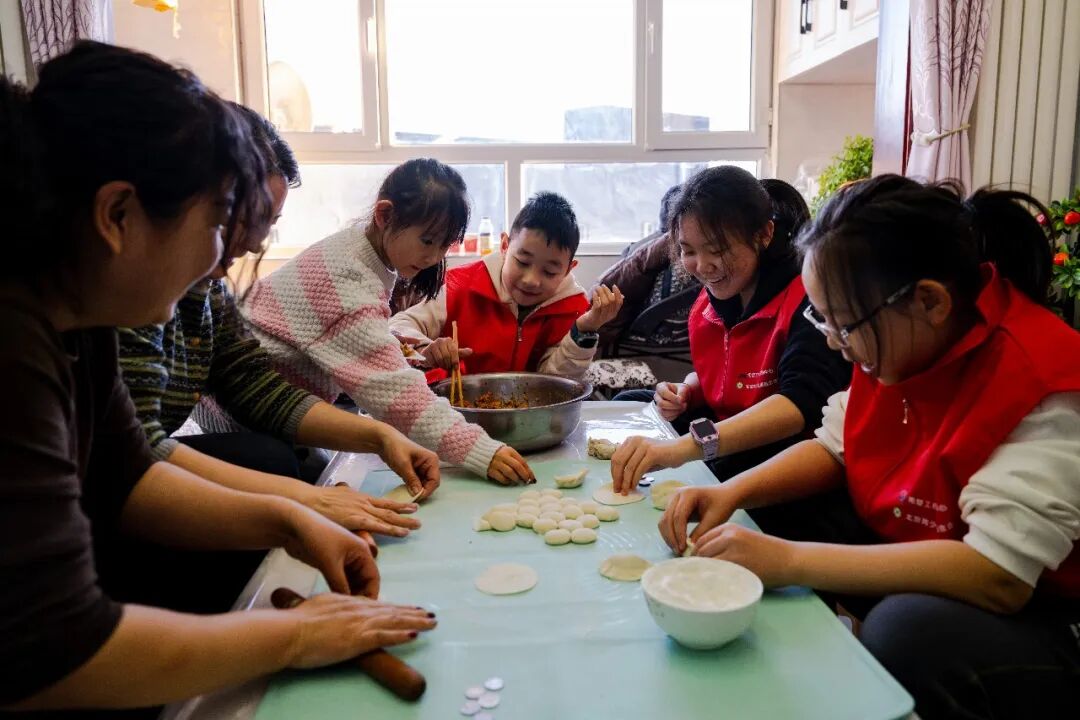 入户走访时,青少年们一起包特色饺子、做面人儿、炸年糕,交流两地年俗趣事,在欢声笑语中共度别样的小年夜。他们认真交流两地学习生活情况,分享学习收获和生活体验,在朋辈交流中共同进步。